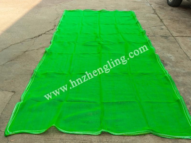(2)筋繩必須縱橫向設(shè)置,相鄰兩筋繩間距在30至100cm,網(wǎng)上的所有繩結(jié)成節(jié)點必須牢固,筋繩應(yīng)伸出邊繩1.2m,以方便網(wǎng)與網(wǎng)或網(wǎng)與模桿之間的拼接綁扎。(或另外加系繩綁扎)。